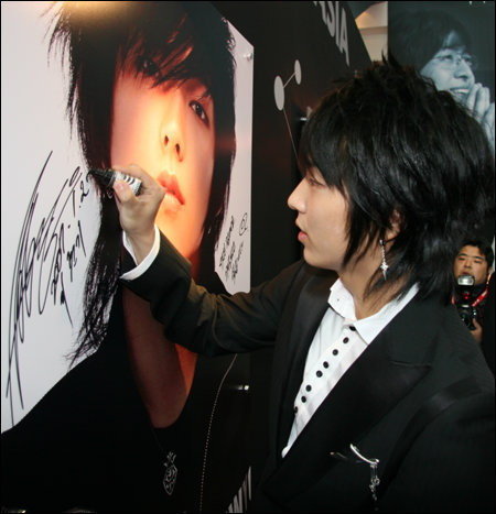 隨後在韓流明星展示會場,提筆在自己的大海報上簽下名字,也參觀和李準基相襯的紅色展示間;影迷們跟著李準基先生的腳步,一直沒停過.今天來現場的影迷們,包括韓國國內及海外的影迷,共約800多名.