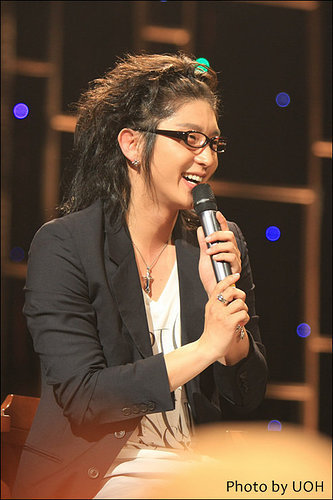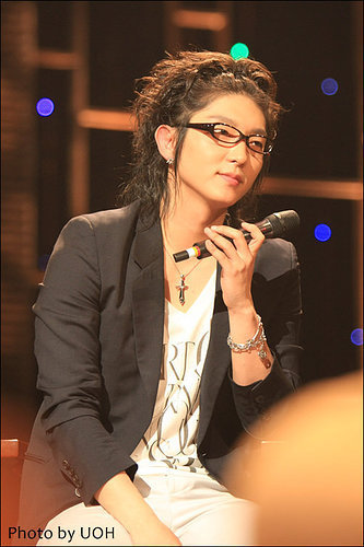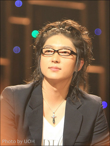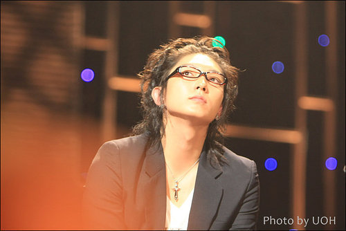 黑色的夾克和天藍色的牛仔褲不僅如此還戴上了一幅黑框的眼睛使李準基更顯魅力四射!