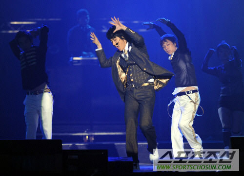 ▲ 李準基的“粉絲演唱會”容歌、舞及脫口秀等各種表演形式於一體,除了國內粉絲,還吸引了來自亞洲各地的6000多名外國粉絲。演出于18日晚7時開始,李準基舞動長刀,以美倫美幻的功夫舞華麗開場,拉開了整場演出的序幕。/體育朝鮮◆唱功非凡,進軍歌壇綽綽有餘
