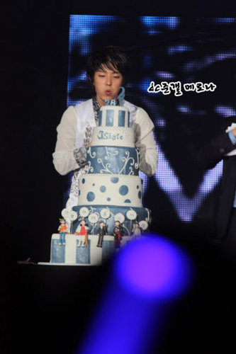 李準基的生日蛋糕也被推上了舞臺,因為昨天是李準基的生日,6000餘粉絲高聲演唱了生日祝福歌。智智用不知什麼時候學的韓語大聲唱著“親愛的準基,祝你生日快樂”,不禁淚光閃閃。智智說:“希望儘快看到李準基的新片。”