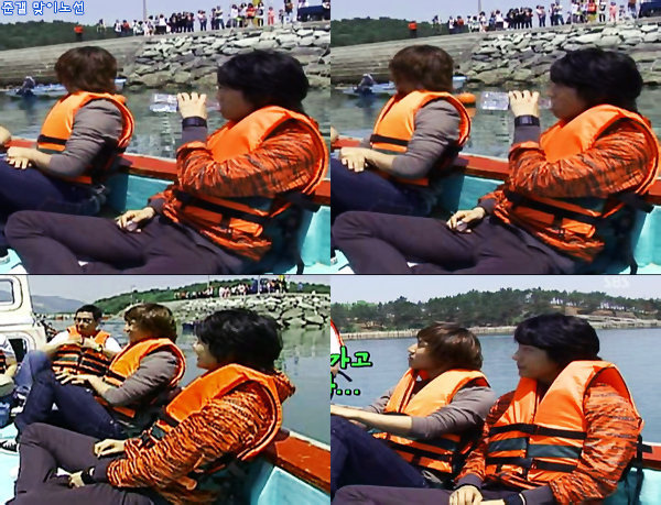 在船上,準基說風的味道很好.劉在石問準基對今天有什麽期待?準基說:"那個不知道,太好了."