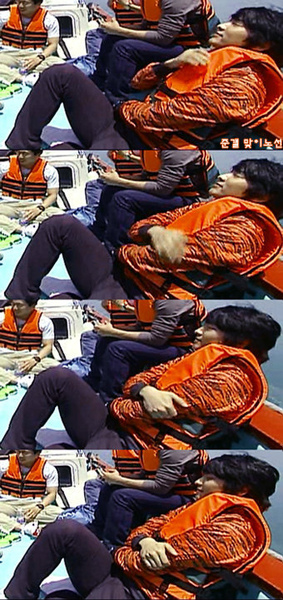 劉在石在船上說有很多觀光客,給準基的字幕是無話可說.