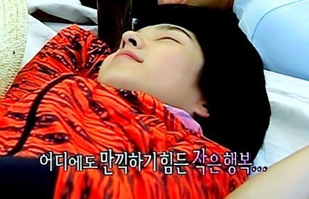 終於到了無人島,大家開始搭了個棚子.沒想到被吹倒了,只好重搭.最好搭好的棚子只有一丁點陰涼,幾個人只好擠在一起.休息了一會兒,李孝莉開始玩弄起劉在石來.