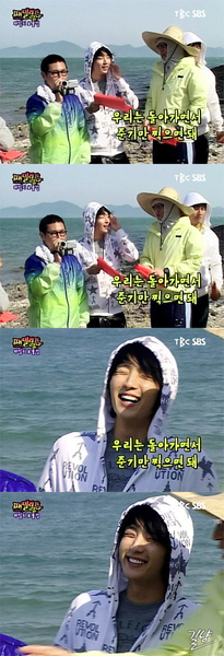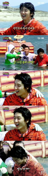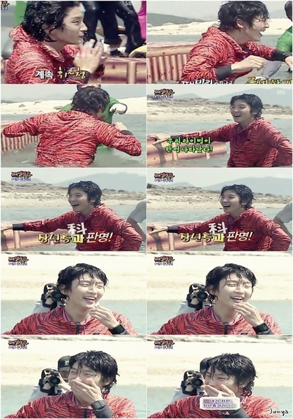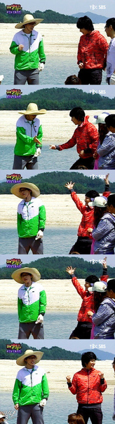 劉在石說完全自信,於是開始了下一局.準基又一次落水,還說比想的要難.目前看來,準基太認真了.