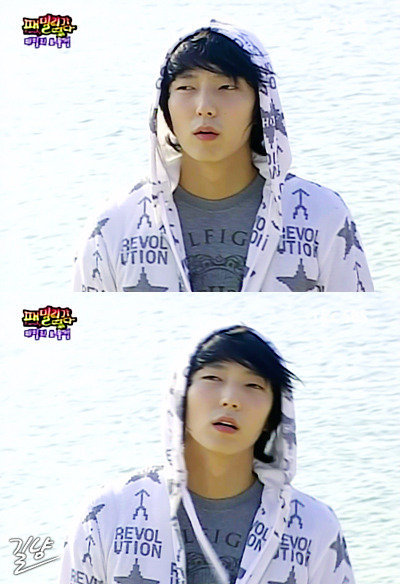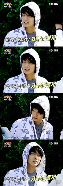 之後眾人回到了原地,因為食材很少,所以劉在石,準基和金鐘國去抓魚.準基說