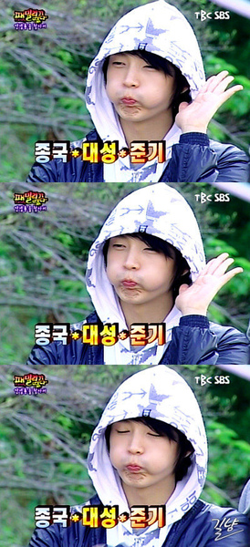 再開始的時候好像換了人,結果劉在石把金鍾國推下了水.之後也被孝莉推下水去,結果劉隊剩了一個人,贏了這局.