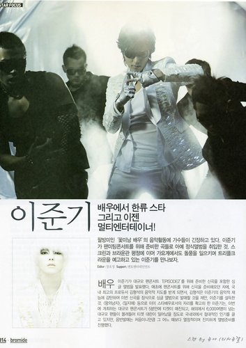 最近公布的《ARENA》雜志09年6月號請來了韓國明星李準基,剛剛發完新專輯的準基忙碌不停,在大師的指點下,拍攝出了與以往截然不同的照片。