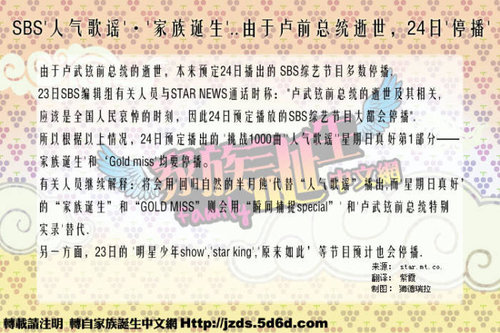 [news-2] SBS 家族誕生由於盧前總統逝世 24日停播